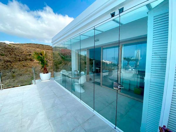 Sin duda, si tu presupuesto es alto, lo mejor que puedes hacer en una terraza de lujo es optar por un cerramiento con láminas de cristal. Te permite contar con un espacio abierto o cerrado a tu merced, pudiendo disfrutar de lo mejor del invierno y lo mejor de la primavera.